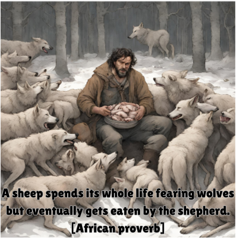And so in the end, the sheep get devoured not by wolves but by their shepherd.