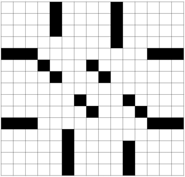 Crosswords must have black square symmetry, which typically comes in the form of 180-degree rotational symmetry;