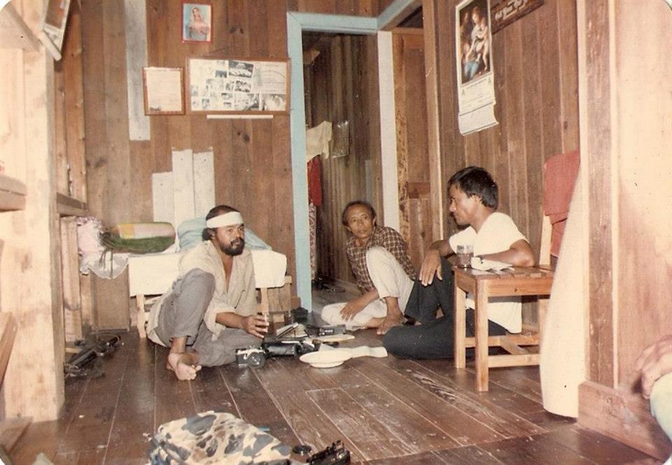 Photos above show Ka Ambo being interviewed by Gus Saboy (center) and Guido Kub-ao (left), right before he surrendered to the government. ca. 1986.