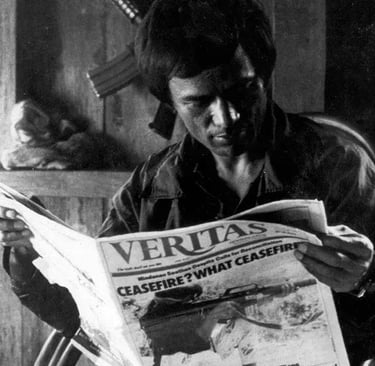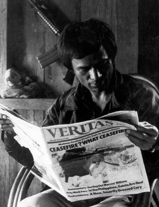 Ka Ambo's iconic photo of him reading the papers with a "baby armalite" behind him was an apt illustration of his image as both an intellectual and a revolutionary. Photo taken with permission from a Facebook post of De-i Balweg.