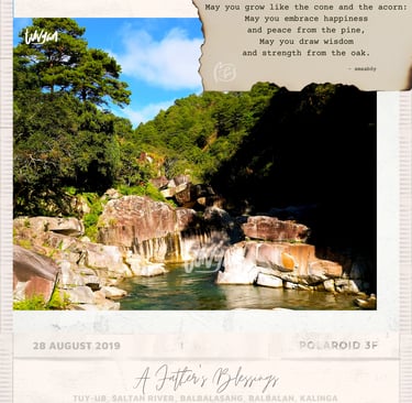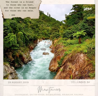 The headwaters of Saltan, considered the cleanest river in Kalinga, flows from the headwaters in the Jay-as and flows down to the Kalinga side to eventually join the mighty Chico River.